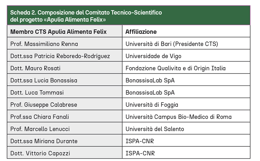 Apulia Alimenta Felix è un progetto ideato e condotto da BonassisaLab, che ne è quindi principale attore sul piano delle competenze e del destino delle informazioni che il progetto produrrà. BonassisaLab ne è partner unico, ma ha previsto contratti di ricerca con ISPA-CNR, Università del Salento e Campus Bio-Medico di Roma, e inoltre si avvale della consulenza specialistica della Manager Hub srl che supporta il management di progetto.